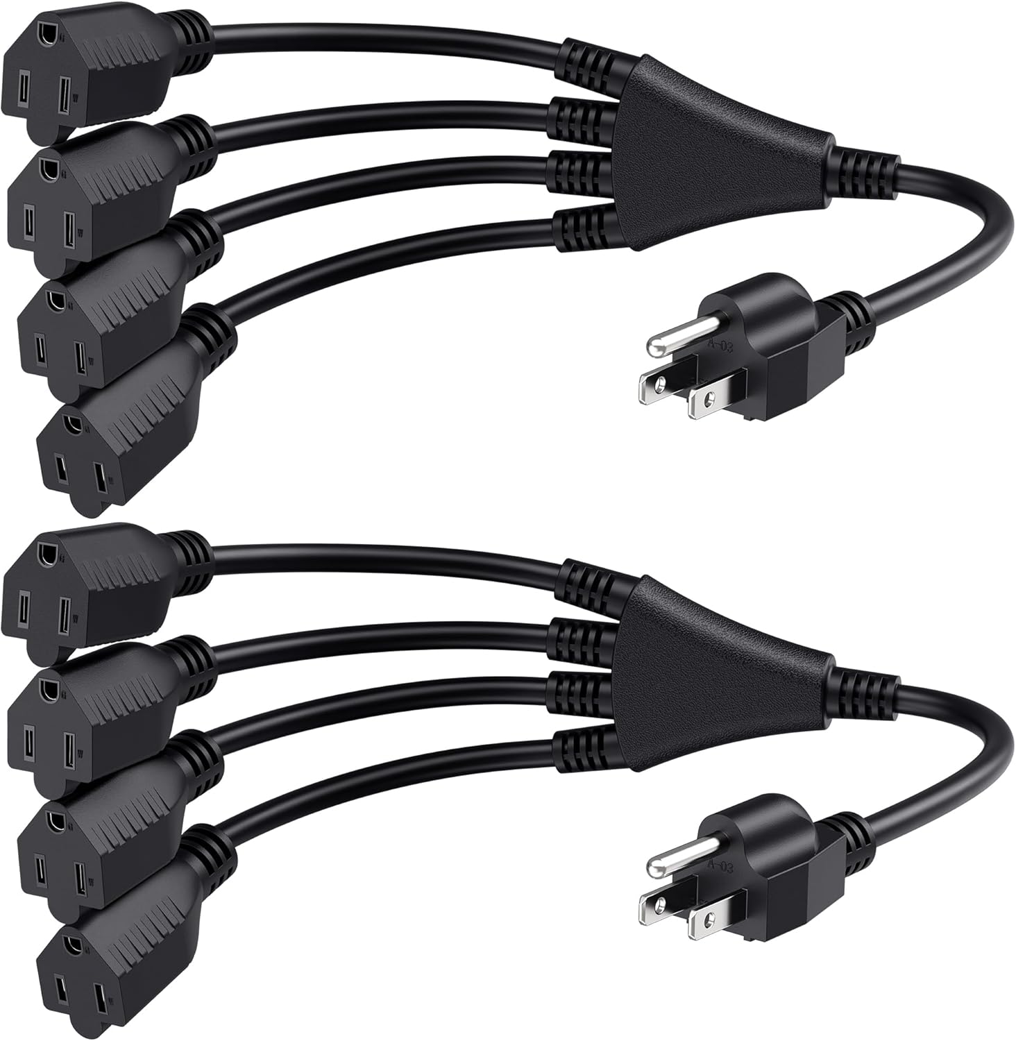 Cable Matters 2-Pack 4 Outlet Power Splitter Cord - 1.5ft, NEMA 5-15P to NEMA 5-15R Y Power Cord Splitter, 16 AWG Outlet Saver, 4 Way ExtensionCord, 1.5 Feet