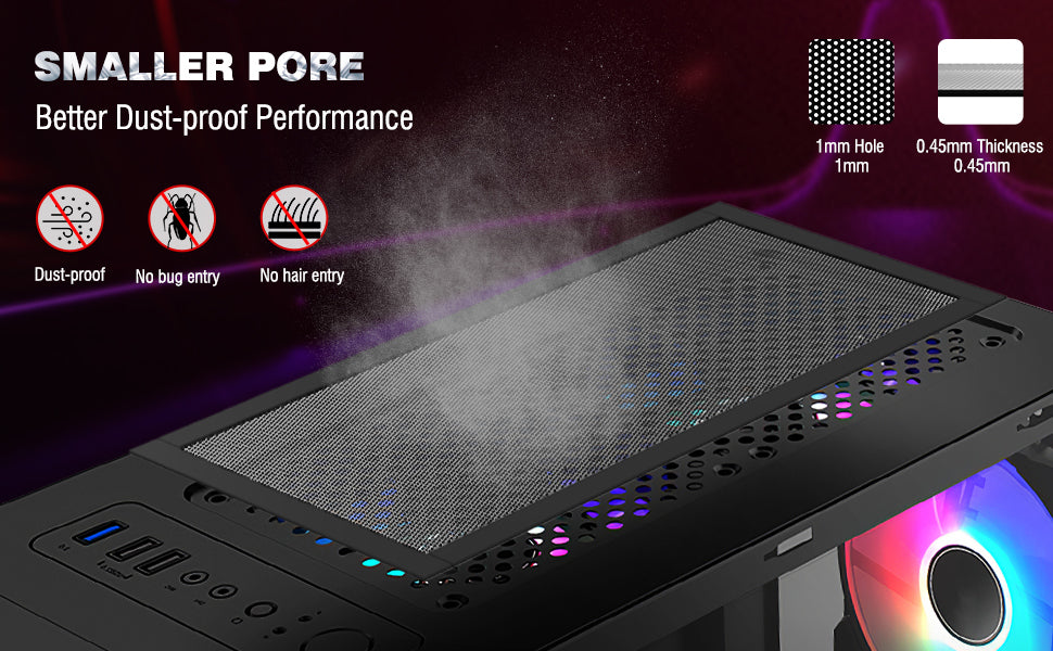 This mesh filter does a good job of allowing air to flow, which protects the PC system from overheat.