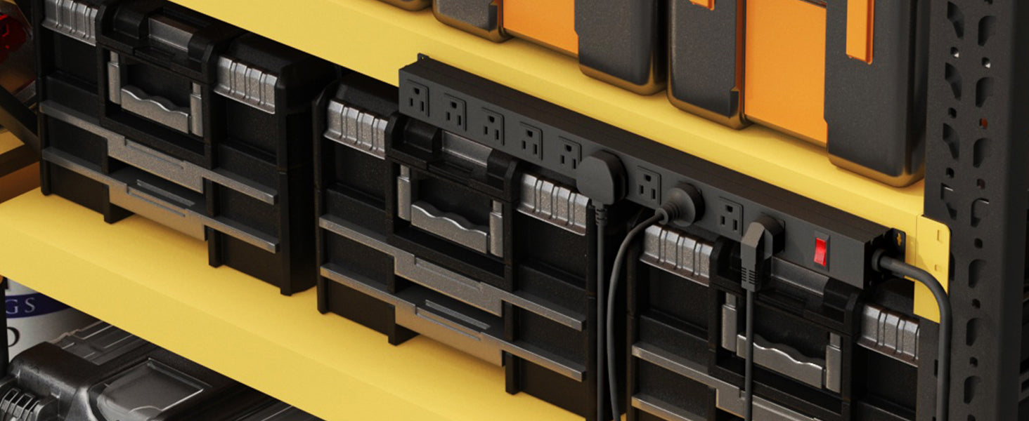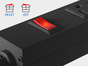 Metal power strip with built-in 15A circuit breaker reacts to emergencies and protects your safety and the life of your equipment.