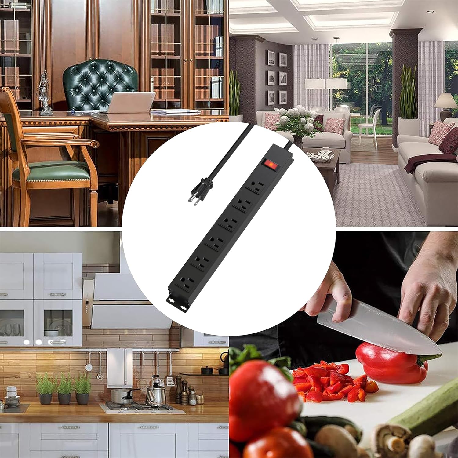 Power Strip with 6AC Outlets 6 Ft UL 14AWG Cord Straight Plug,Metal Wall Mount Heavy Duty Power Strip with Switch for Commercial,Industrial,School and Home,15A/125V/1875W,Black(6FT)