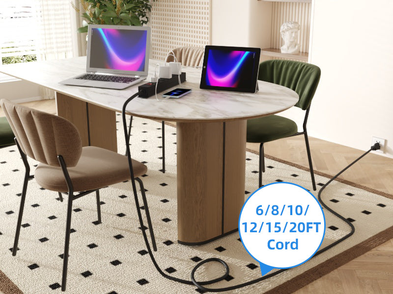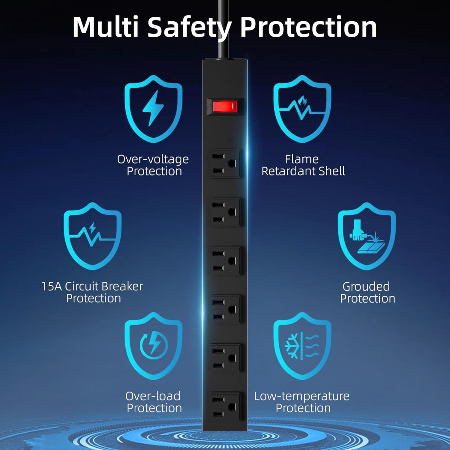 Metal power strip has over-voltage protection, 15A circuit breaker protection, overload protection, low-temperature protection, using metal flame-retardant shell, different power cord lengths for you to choose from, very suitable for living room, kitchen, offMulti Outlet Power Strip Availableice, industrial, school and so on, bringing you convenience in life!