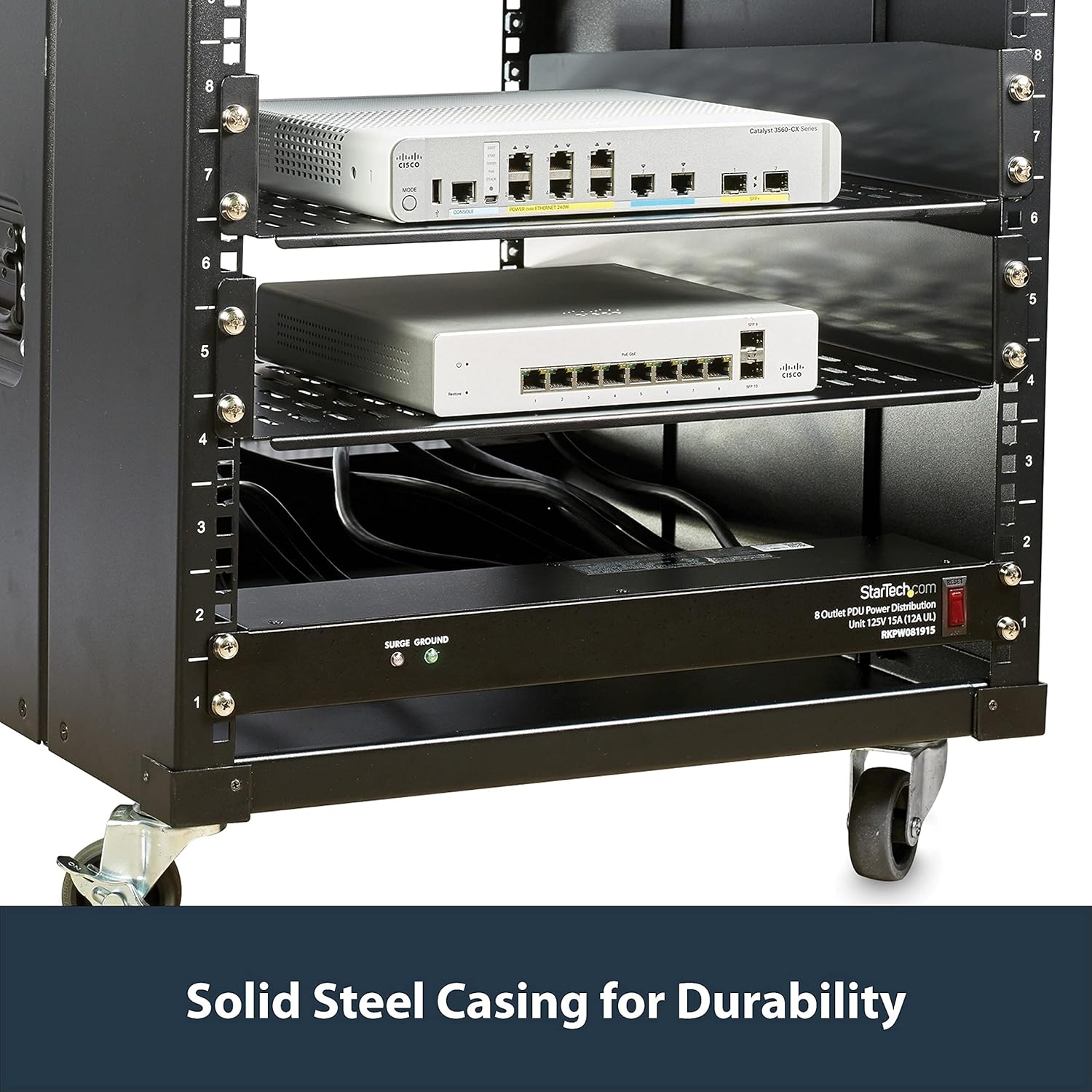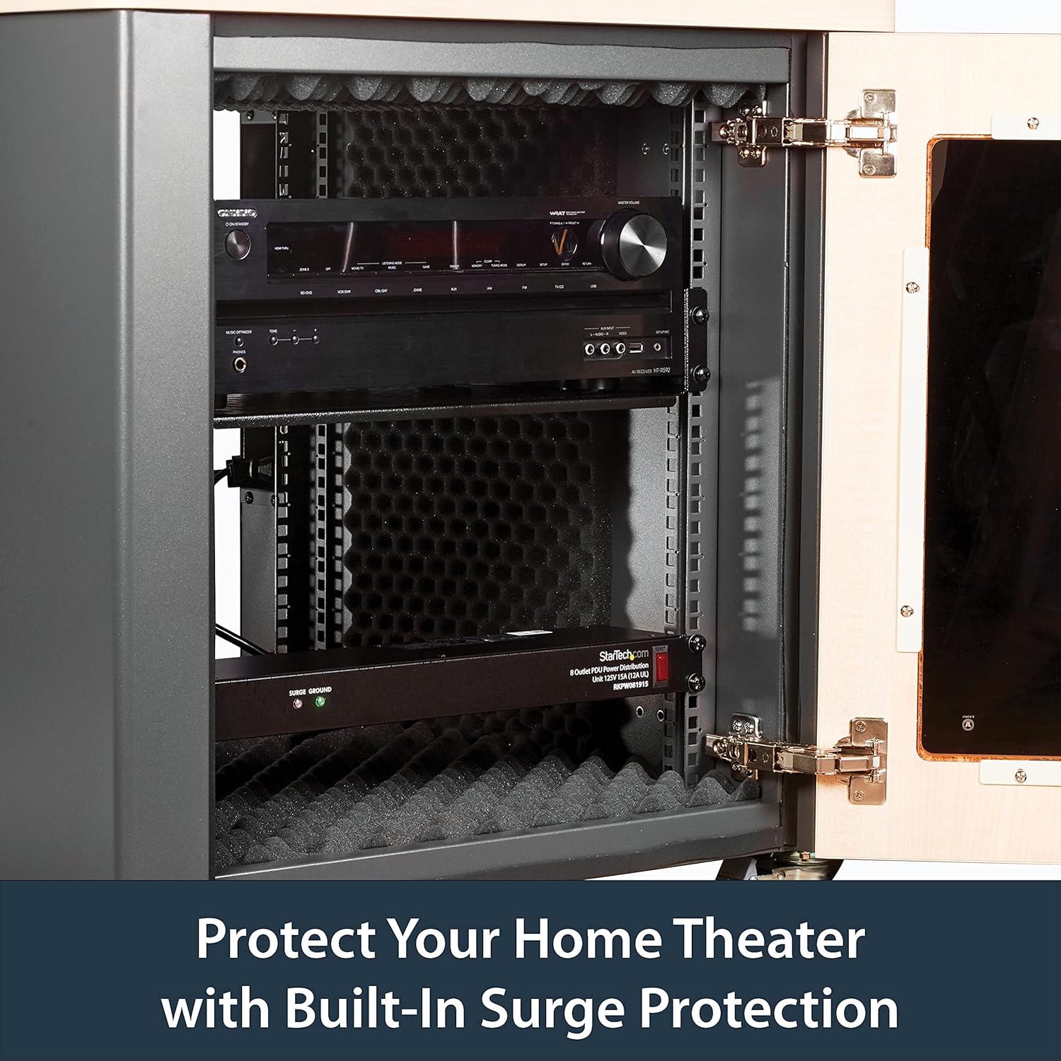 StarTech.com 8 Outlet Horizontal 1U Rack Mount PDU Power Strip for Network Server Racks - Surge Protection - 120V/15A - w/ 6ft Power Cord (RKPW081915)