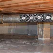 A compact fan installed discreetly in the crawlspace, effectively reducing moisture and promoting air circulation. Its low-profile presence silently improves the air quality, safeguarding the foundation of the building.