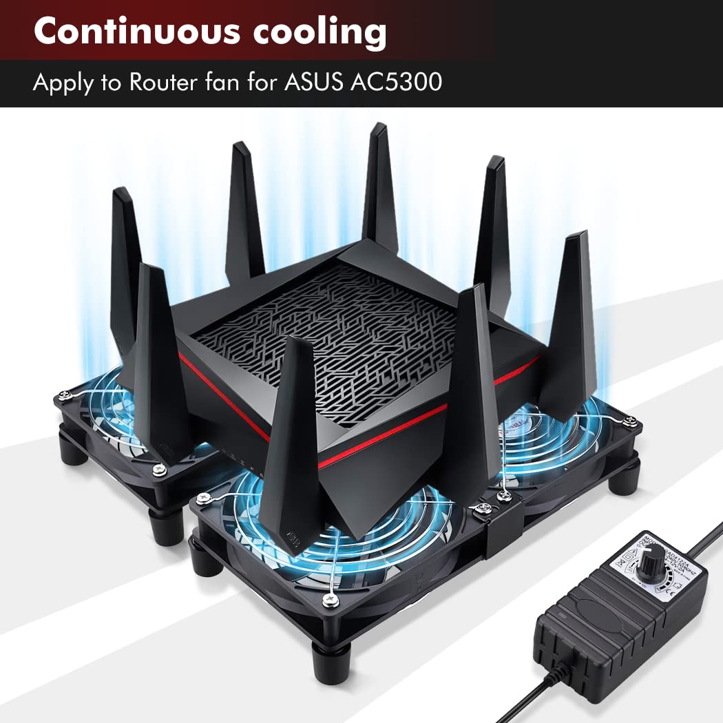 - Designed to quietly ASUS GT/RT- AC5300 , GPU mining rig, cool Xboxs, Playtations, Rokus, TVs, receivers, mondems, routers, DVRs, window fans , and other audio video electronics. Used to cool network appliances, living room console, av receiver, greenhouse, refrigerator, and garage. Variable speed controller, easy to plug in and dial in a speed.